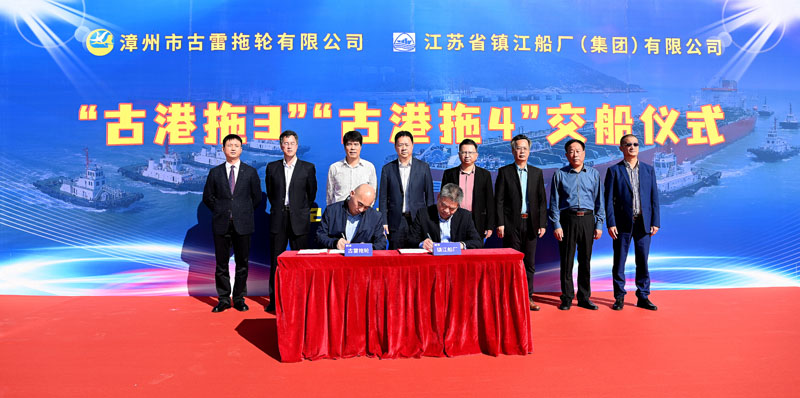 12月16日上午,由厦门港务船务有限公司控股子公司漳州市古雷拖轮有限公司(以下简称“古雷拖轮公司 ”)投资建造的“古港拖3”“古港拖4”交船仪式在北1码头古雷拖轮基地隆重举行。