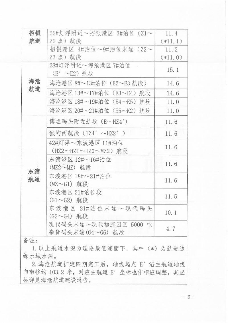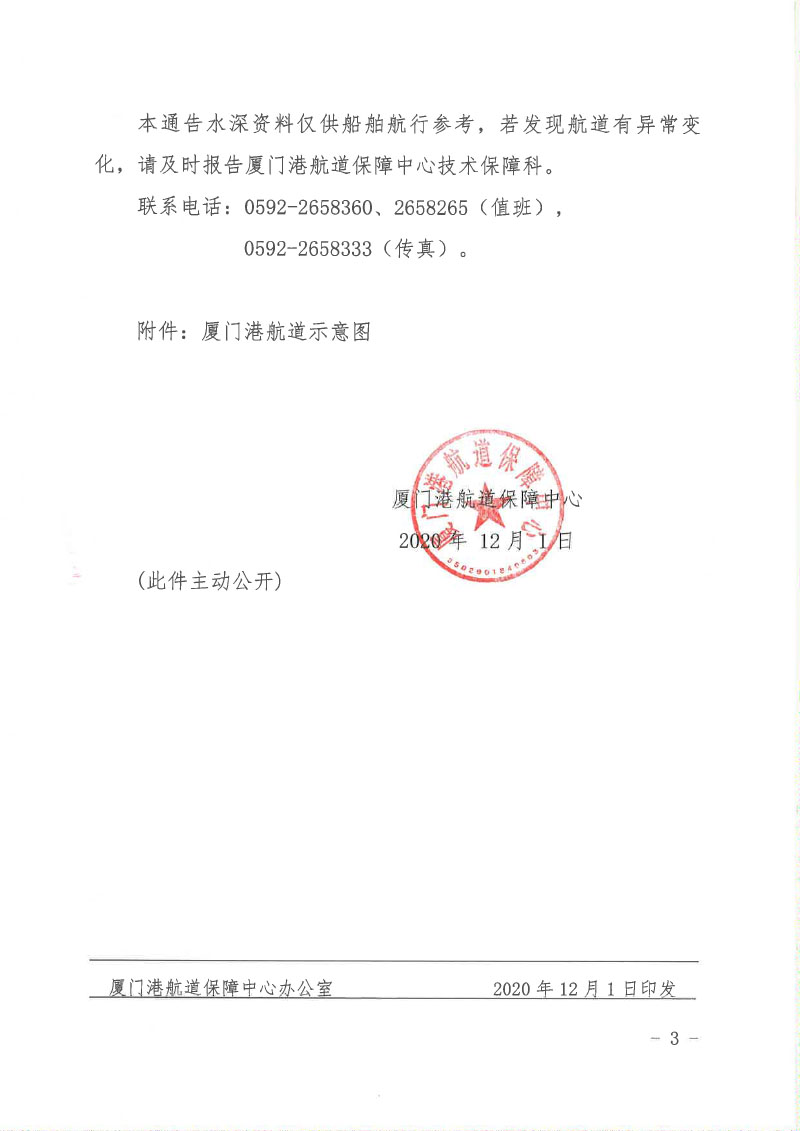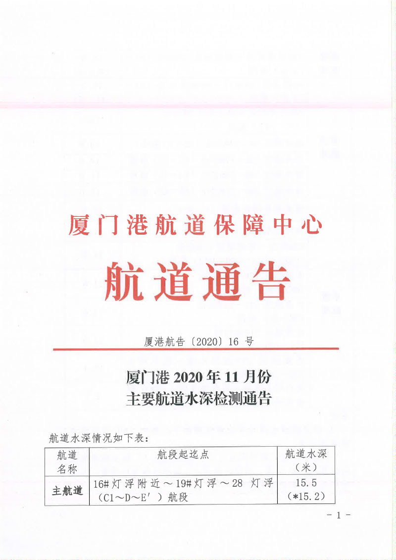 厦门港2020年11月份主要航道水深检测通告