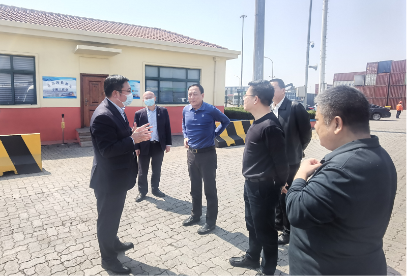 调研组与天津港集团许旭波副总裁及物流板块相关负责人进行交流座谈。相关负责人介绍天津港的货源结构、海铁联运业务发展情况与经验做法,阐释了天津港“1+8+15”物流发展战略体系,对考察组提出的问题进行解答。据介绍,天津港2022年完成集装箱海铁联运120余万标箱,全国排名第三,同比增长20.2%。