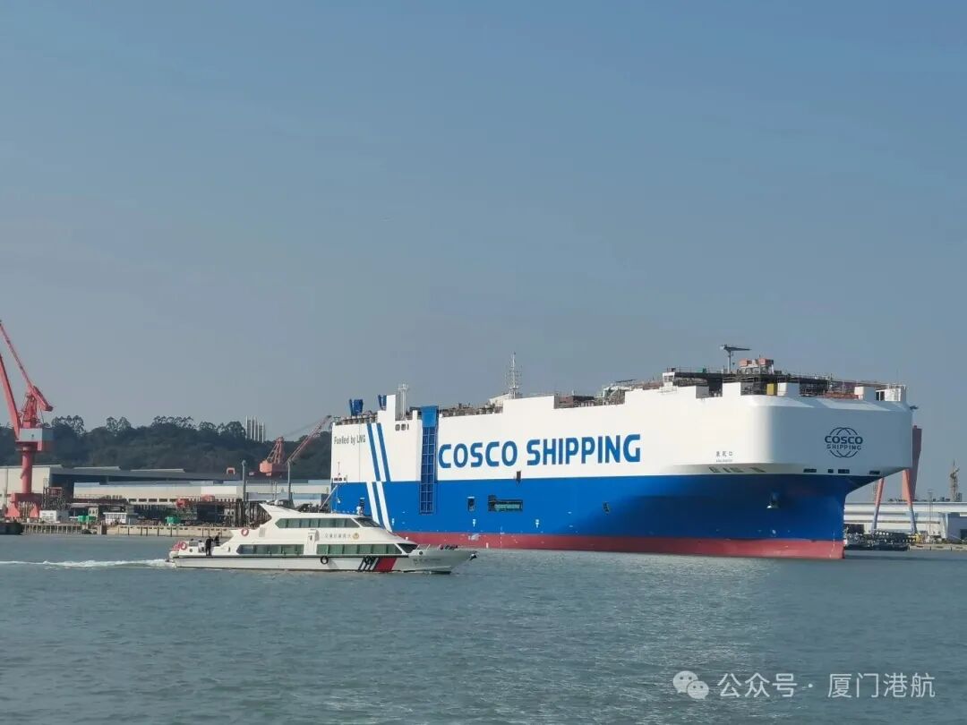 "康乾口"轮是厦船重工建造的先进LNG双燃料7500车汽车运输船,代表了当前世界汽车滚装船设计的最高水平,其出坞标志着中国在绿色智能船舶建造领域继续保持领先地位,也为中国汽车产业链的"双碳"目标贡献了重要力量。