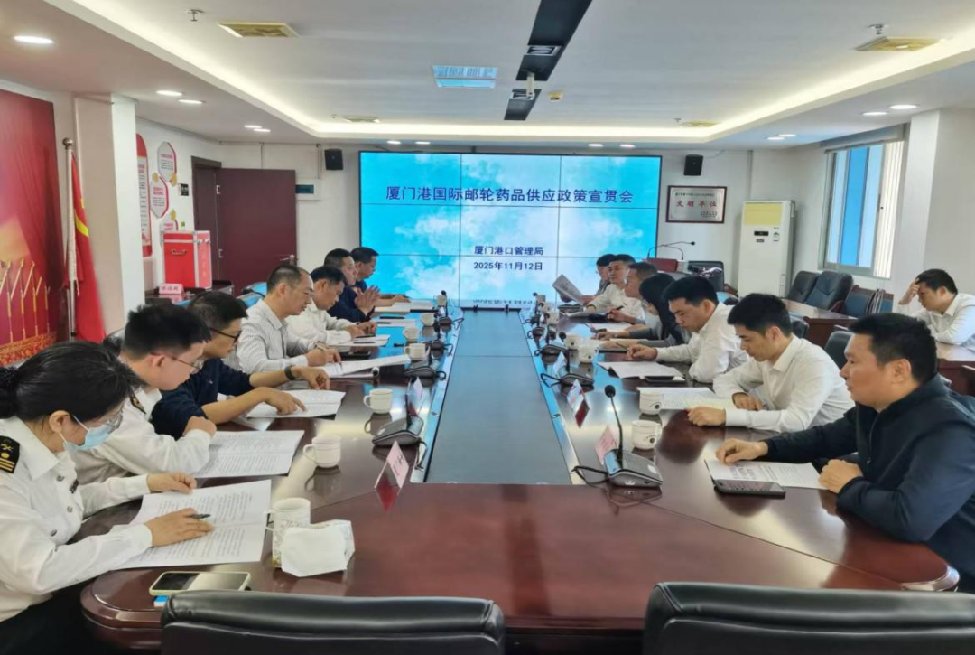 近日,厦门港口管理局、市市场监督管理局、厦门海关联合召开《厦门港国际邮轮药品供应有关事宜的通知》政策宣贯会,系统解读了邮轮药品供应的具体要求、操作流程及责任规范,并针对性解答了与会船供服务企业的操作疑问,助力企业精准把握政策、提升服务水平。